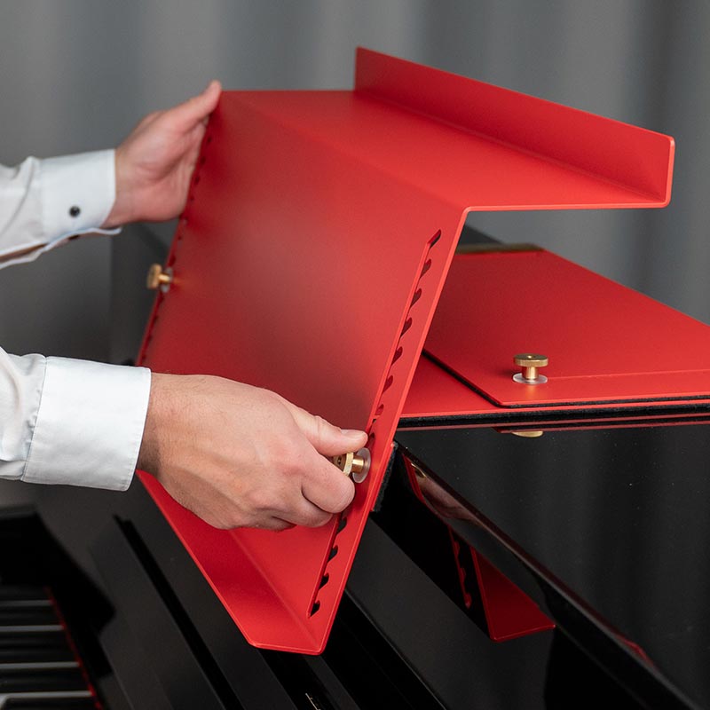 ADDITION ist ein höhenverstellbares Notenpult für Klaviere. Es wurde dafür entwickelt, die Notenhöhe an unterschiedliche Situationen beim Üben, Unterrichten und Spielen anzupassen.