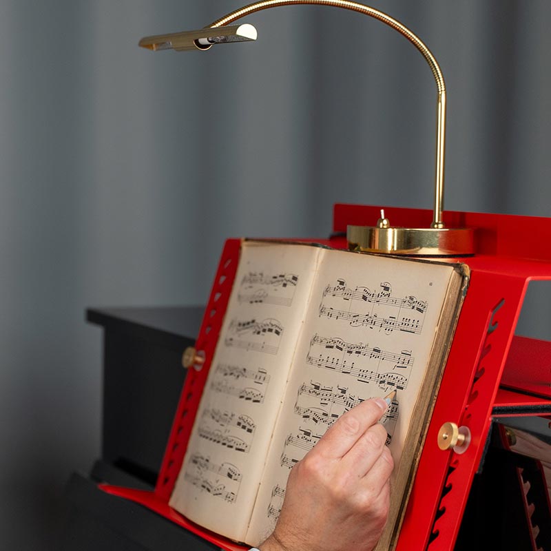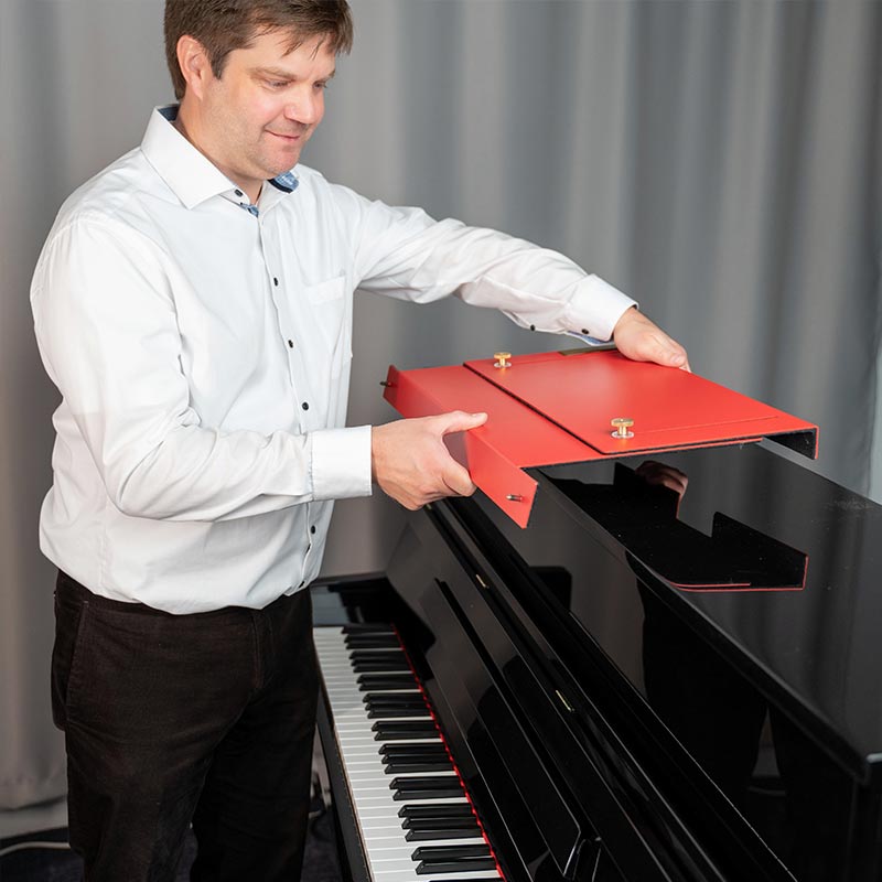 ADDITION ist höhenverstellbar, bietet eine breite Auflagefläche für Noten und ist für handelsübliche Klaviere konzipiert. Zudem ist die Ausführung darauf ausgelegt, die Oberfläche des Instruments zu schonen.